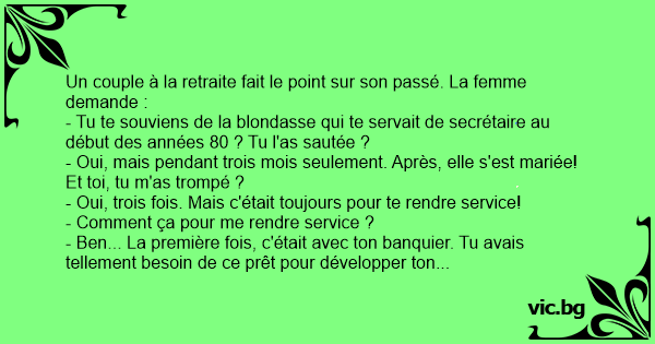 - Tu te souviens de la blondasse qui te servait de secrétaire au début des années 80 ? Tu l'as sautée ?