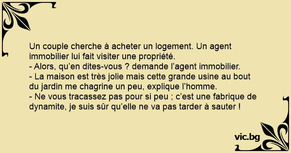 - La maison est très jolie mais cette grande usine au bout du jardin me chagrine un peu, explique l’homme.