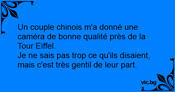 Un couple chinois m'a donné une caméra de воnnе qualité près de la Tour Eiffel.