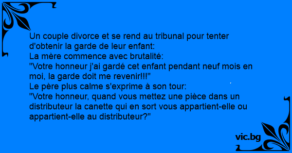 "Votre honneur j'ai gardé cet enfant pendant neuf mois en moi, la garde doit me revenir!!!"