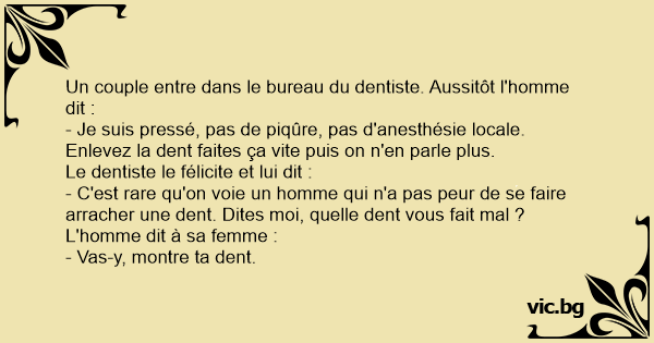 Un couple entre dans le bureau du dentiste. Aussitôt l'homme dit :
