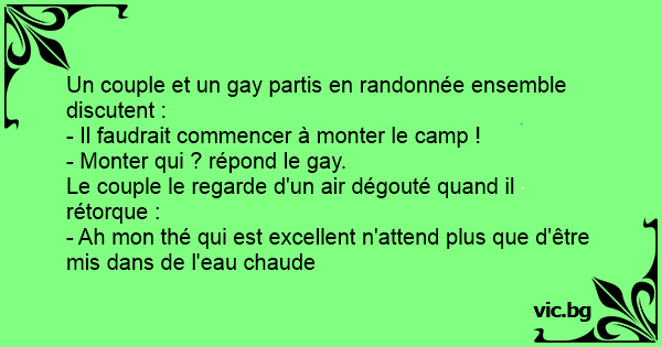 Un couple et un gаy partis en randonnée ensemble discutent :
