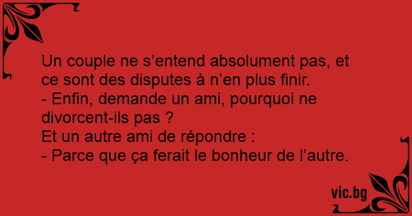 - Enfin, demande un ami, pourquoi ne divorcent-ils pas ?