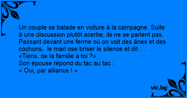 Passant devant une ferme où on voit des ânes et des cochons,  le mari ose briser le silence et dit :