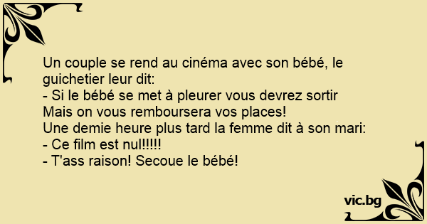 Un couple se rend au cinéma avec son bébé, le guichetier leur dit:
