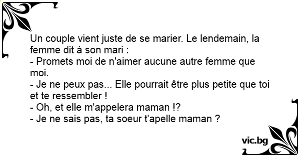 Un couple vient juste de se marier. Le lendemain, la femme dit à son mari :