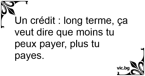 Un crédit : long terme, ça veut dire que moins tu peux payer, plus tu payes.