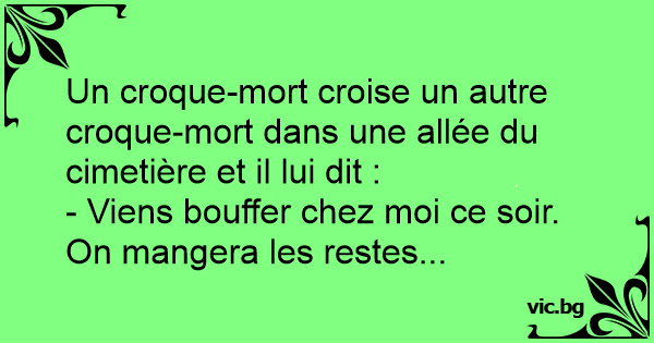 Un croque-mort croise un autre croque-mort dans une allée du cimetière et il lui dit :