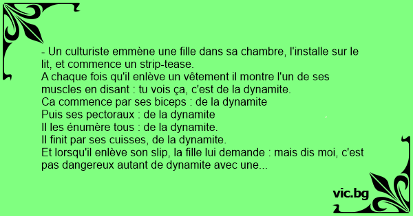 Et lorsqu'il enlève son slip, la fille lui demande : mais dis moi, c'est pas dangereux autant de dynamite avec une si petite mèche ?