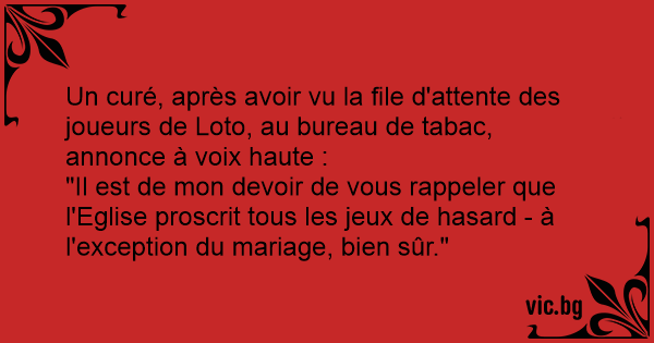Un curé, après avoir vu la file d'attente des joueurs de Loto, au bureau de tabac, annonce à voix haute :