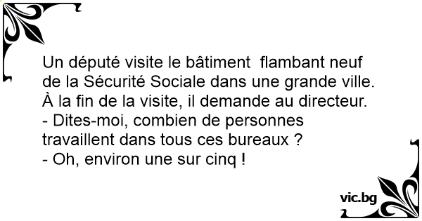 Un député visite le bâtiment  flambant neuf de la Sécurité Sociale dans une grande ville. À la fin de la visite, il demande au directeur.
