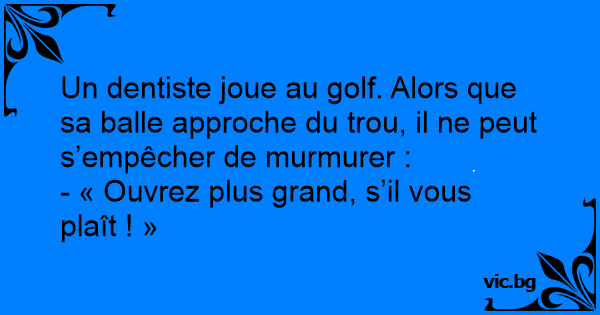 Un dentiste joue au golf. Alors que sa ваllе approche du trou, il ne peut s’empêcher de murmurer :