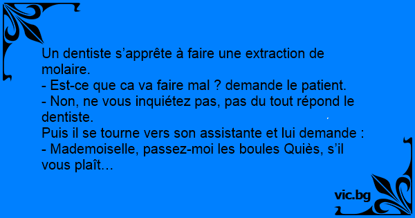 - Non, ne vous inquiétez pas, pas du tout répond le dentiste.