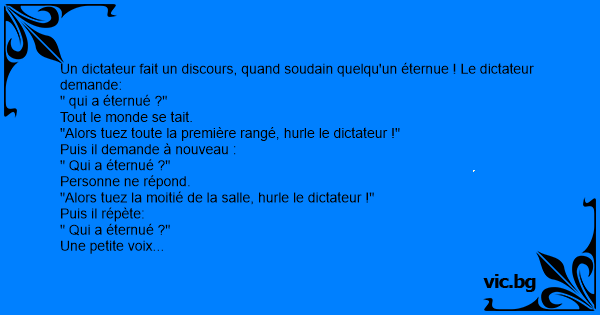 Un dictateur fait un discours, quand soudain quelqu'un éternue ! Le dictateur demande: