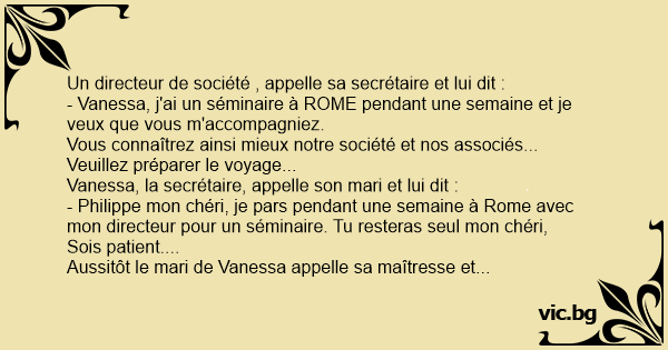 Vanessa, la secrétaire, appelle son mari et lui dit :