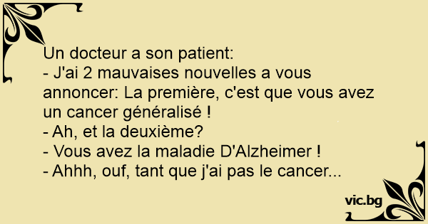 - J'ai 2 mauvaises nouvelles a vous annoncer: La première, c'est que vous avez un cancer généralisé !
