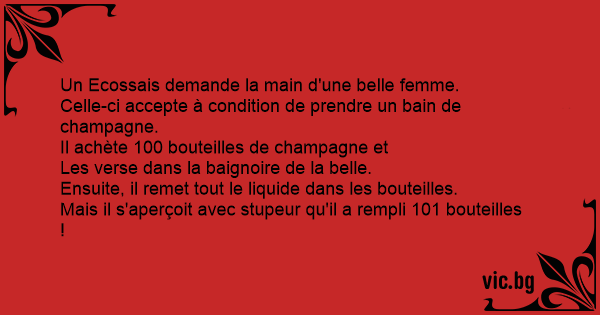 Celle-ci accepte à condition de prendre un bain de champagne.