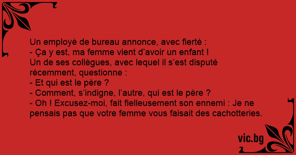 - Oh ! Excusez-moi, fait fielleusement son ennemi : Je ne pensais pas que votre femme vous faisait des cachotteries.
