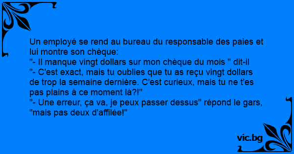 "- Il manque vingt dollars sur mon chèque du mois " dit-il