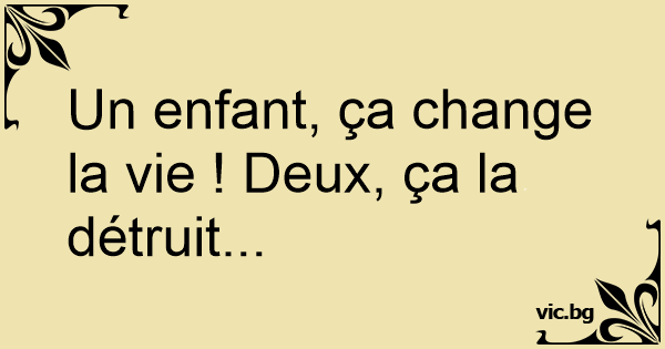 Un enfant, ça change la vie ! Deux, ça la détruit...