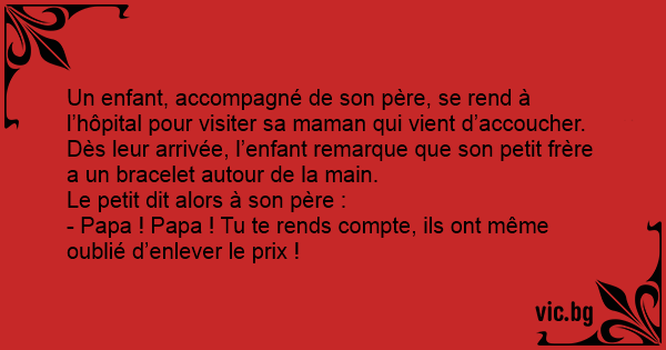 - Papa ! Papa ! Tu te rends compte, ils ont même oublié d’enlever le prix !