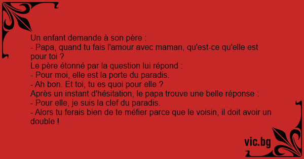 - Papa, quand tu fais l'amour avec maman, qu'est-ce qu'elle est pour toi ?