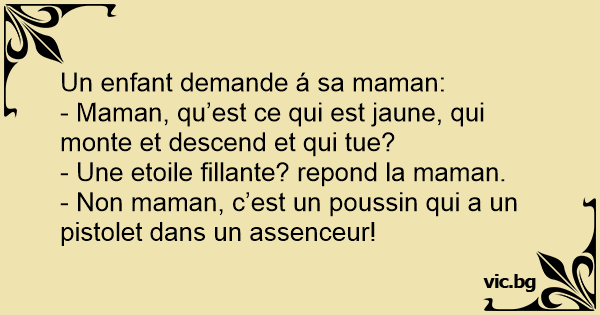 - Maman, qu’est ce qui est jaune, qui monte et descend et qui tue?