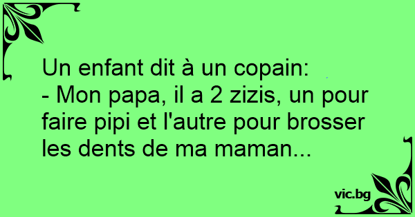 - Mon papa, il a 2 zizis, un pour faire pipi et l'autre pour brosser les dents de ma maman...