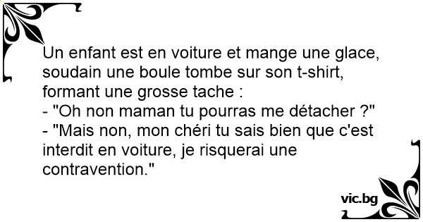 Un enfant est en voiture et mange une glace, soudain une boule tombe sur son t-shirt, formant une grosse tache :