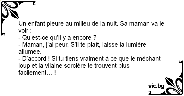 Un enfant pleure au milieu de la nuit. Sa maman va le voir :
