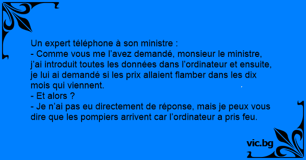 - Comme vous me l’avez demandé, monsieur le ministre, j’ai introduit toutes les données dans l’ordinateur et ensuite, je lui ai demandé si les prix allaient flamber dans les dix mois qui viennent.