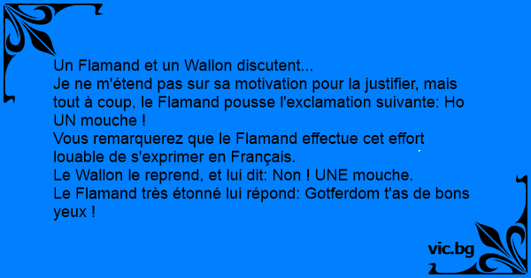 Le Flamand très étonné lui répond: Gotferdom t'as de bons yeux !