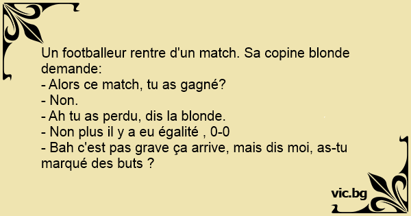 Un footballeur rentre d'un match. Sa copine blonde demande: