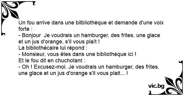 Un fou arrive dans une bilbliothèque et demande d'une voix forte :