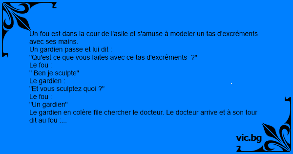 Le gardien en colère file chercher le docteur. Le docteur arrive et à son tour dit au fou :