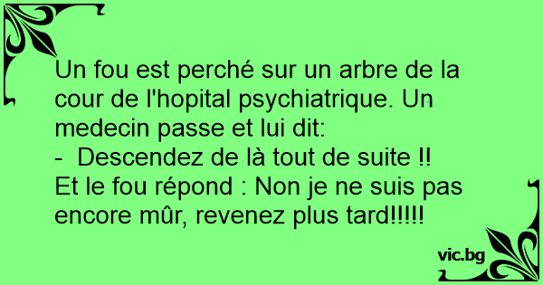 Un fou est perché sur un arbre de la cour de l'hopital psychiatrique. Un medecin passe et lui dit: