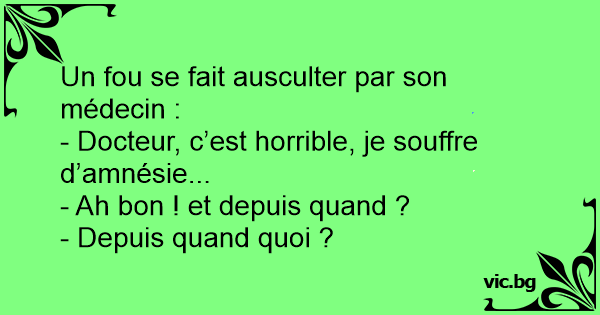 - Docteur, c’est horrible, je souffre d’amnésie...