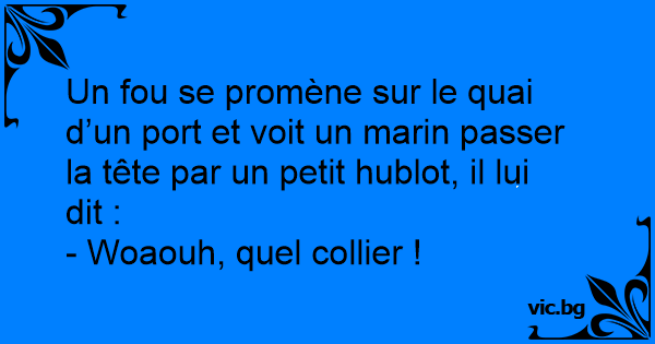 Un fou se promène sur le quai d’un port et voit un marin passer la tête par un petit hublot, il lui dit :