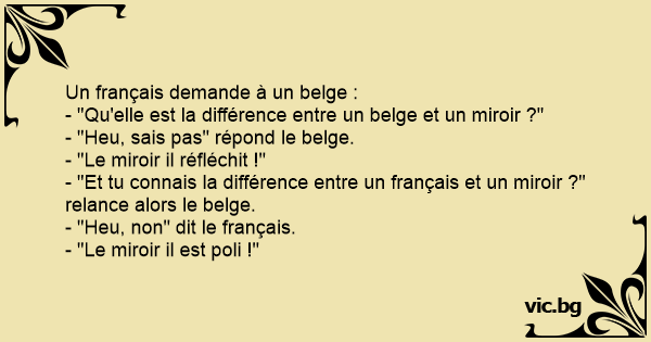 - "Et tu connais la différence entre un français et un miroir ?" relance alors le belge.