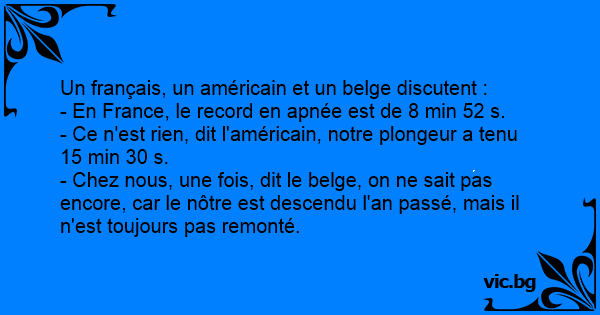 - Ce n'est rien, dit l'américain, notre plongeur a tenu 15 min 30 s.