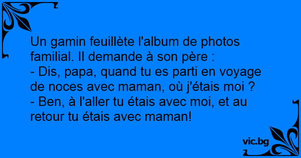 Un gamin feuillète l'album de photos familial. Il demande à son père :