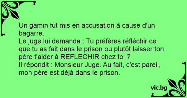 Il répondit : Monsieur Juge. Au fait, c'est pareil, mon père est déjà dans le prison.