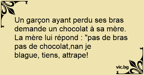 La mère lui répond : "pas de bras pas de chocolat,nan je blague, tiens, attrape!
