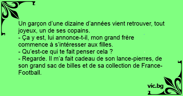 - Ça y est, lui annonce-t-il, mon grand frère commence à s’intéresser aux filles.
