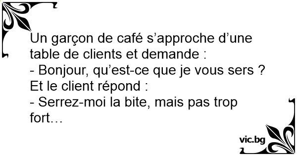 Un garçon de café s’approche d’une table de clients et demande :
