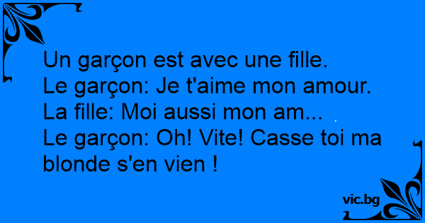 Le garçon: Oh! Vite! Casse toi ma blonde s'en vien !