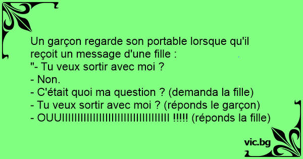 - Tu veux sortir avec moi ? (réponds le garçon)