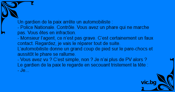- Police Nationale. Contrôle. Vous avez un phare qui ne marche pas. Vous êtes en infraction.