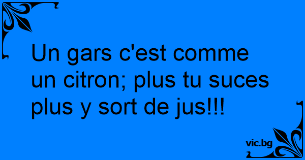Un gars c'est comme un citron; plus tu suces plus y sort de jus!!!