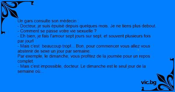 - Mais c'est impossible, docteur. Le dimanche est le seul jour de la semaine où je suis à la maison!